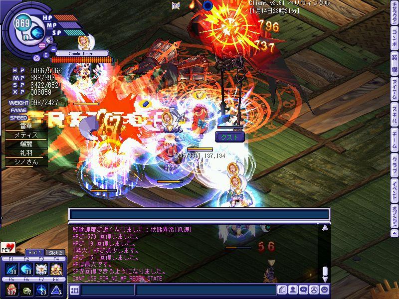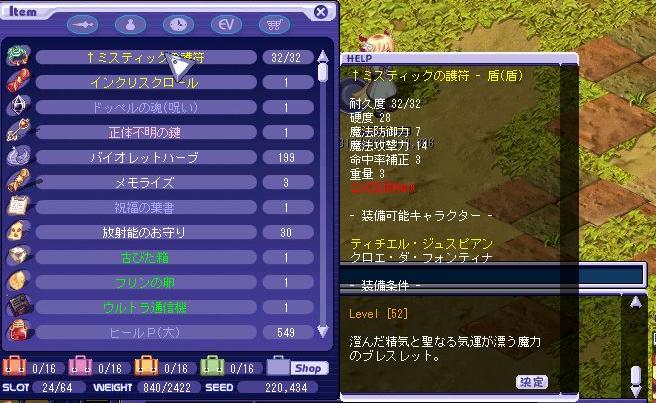 昨日は、すごいもの?を見つけました。INT14のミスティックの護符。 なんと24,5mも出して買ってしまったあたし。。。 高いか安いかは各自の判断に任せます。 魔力(大)を持っており、少々欲が出たあたし。。。 「INT17にしたらすごいな。。。」そう考えたが早速行動! インクリを3,1mで仕入れいざ合成回数減少に・・・。結果は↓のSSのとおり。 見事に大爆発。。。総額27,6mもの無駄遣い。。。 けどあたしは笑って流しますよ。(実は泣いてたり?) 今回の失敗にめげず次もがんばろぅ♪ 今日はかしむしと戦ってみました。。。打撃攻撃はなかなか通用しない固い奴(´・ω・`) っと言うわけであたしはみくに誘われてかしむし退治に(*`・ω・*)ゞ 打撃&斬り突きより魔法のダメージのほうがでかいっ!衝撃でしたっ(´∩`。) やっとの思いで倒したかしむしから出たアイテムは「大地の玉」のみ・・・ 初のかしむし退治は無事?終了ですっ もっと火力上げて砂板出したいな♪(夢です・・・ |